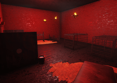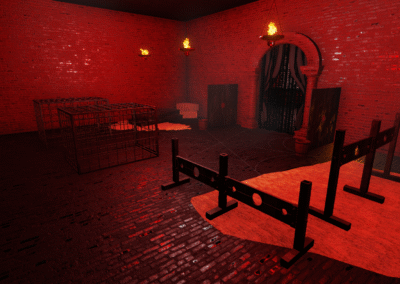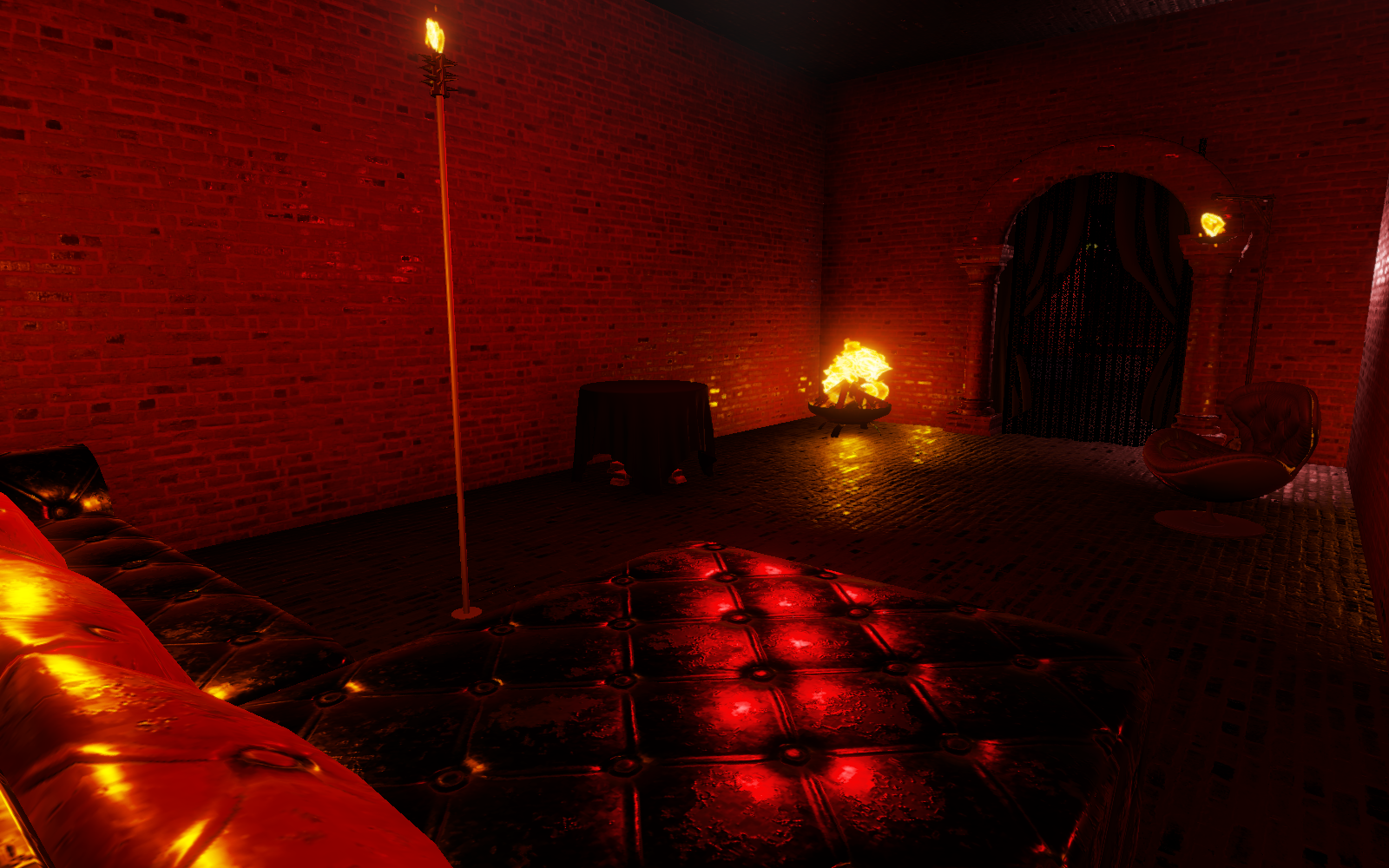 Back-Area = wicked: zwei eiserne Käfige, eine Pranger-Reihe, rough Play-Flächen und eine samtige Lounge – diskret hinter schweren Vorhängen. Kurze Wege, klare Blickachsen; das Licht frisst sich an den Mauern entlang, Fackeln flackern im Takt, und die Bar serviert süße Sünden im Glas.