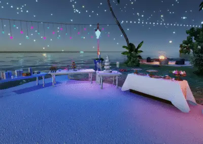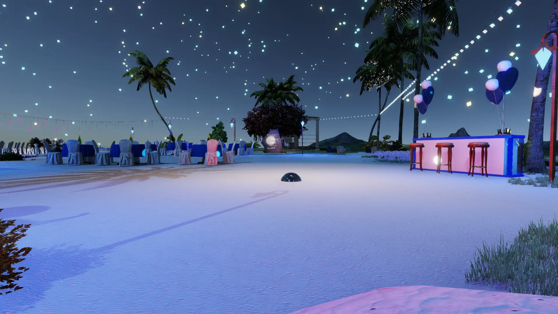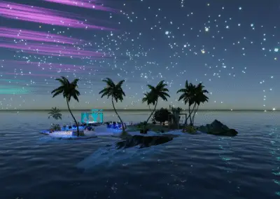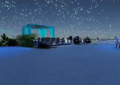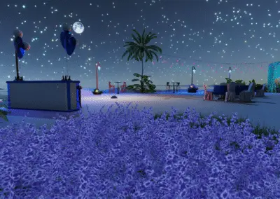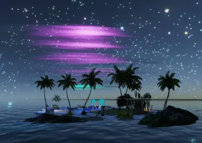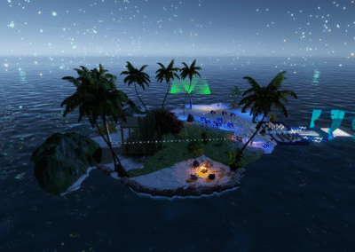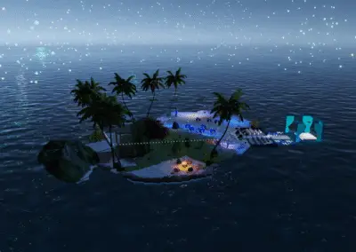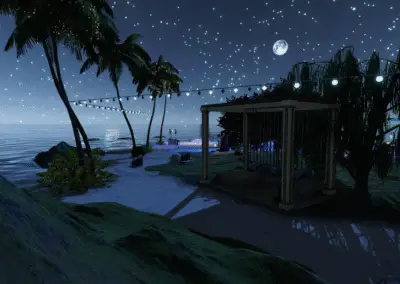 Entdecke Ladys Oase in Meredian: Palmenhain, Felskulisse, Lagune, Feuerstelle, Cabanas und Hängesessel. Ideal für Dates, entspannte Runden und stimmungsvolle Abende.Der Raum war eine Auftragsarbeit für eine gute Freundin.